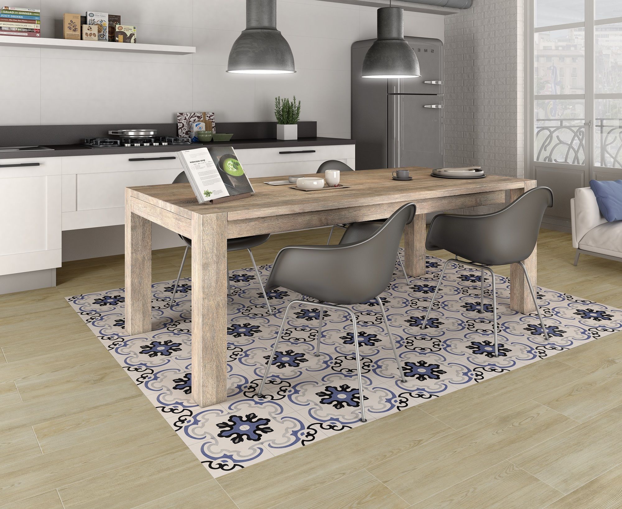 En la actualidad, muchas personas optan por tener cocinas abiertas al salón, ya que esta opción nos ofrece comodidad y versatilidad y además, nos permite tener una vida social más activa. Sin embargo, al liberarnos de los tabiques, debemos tener en cuenta algunos factores a la hora de diseñar nuestros interiores. En este artículo, te mostramos varias opciones de azulejos para que puedas decidir el diseño de tu cocina y el pavimento que mejor te encaja.